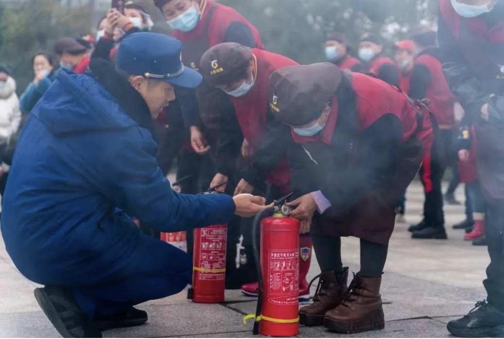 培训现场,消防人员向大家讲解了灭火器的分类、使用要点以及注意事项,然后通过手把手地实践操作,对如何使用灭火器进行逐一指导。
