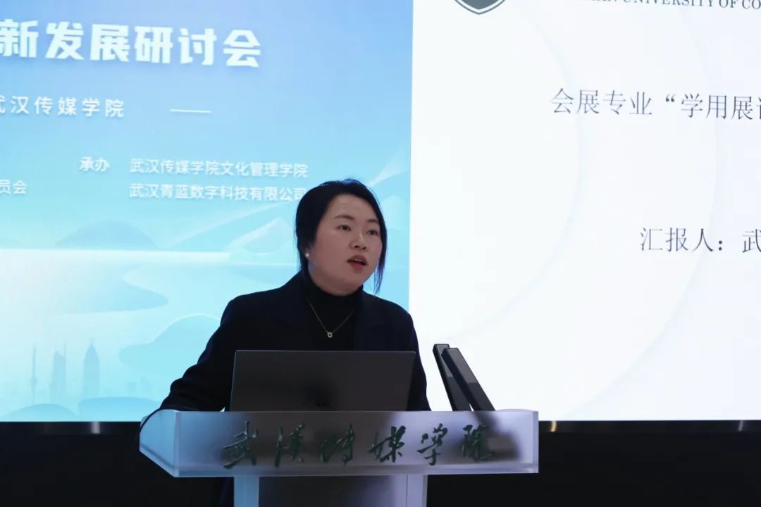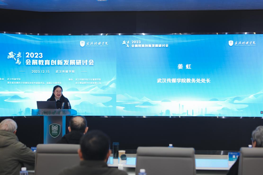 武汉传媒学院教务处处长姜虹代表学校致辞。她指出,产教深度融合赋能会展业高质量发展是当前会展业的迫切需求和重要趋势,武汉传媒学院将继续坚持开放办学,不断改进教育教学质量,深化产教融合,培养更多具有社会责任感和创新精神的高素质应用型人才,为湖北及武汉会展业高质量发展贡献力量。