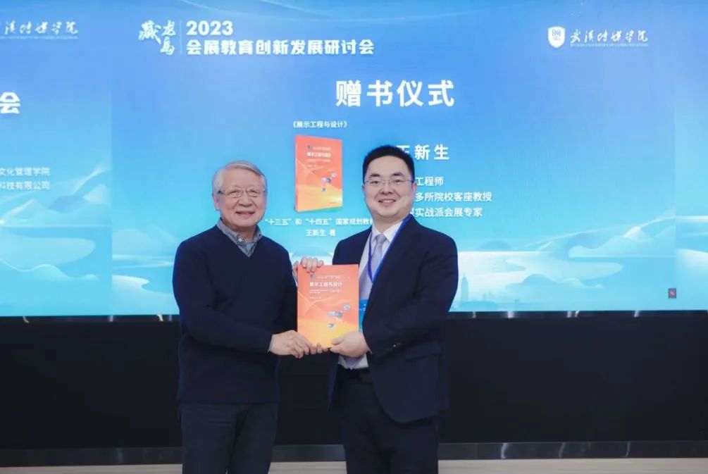 全国著名展览工程专家、高级工程师王新生老师为支持本次研讨会的召开,特向学校捐赠图书。我校会展经济与管理专业带头人蒋冬青作为代表接受赠书。