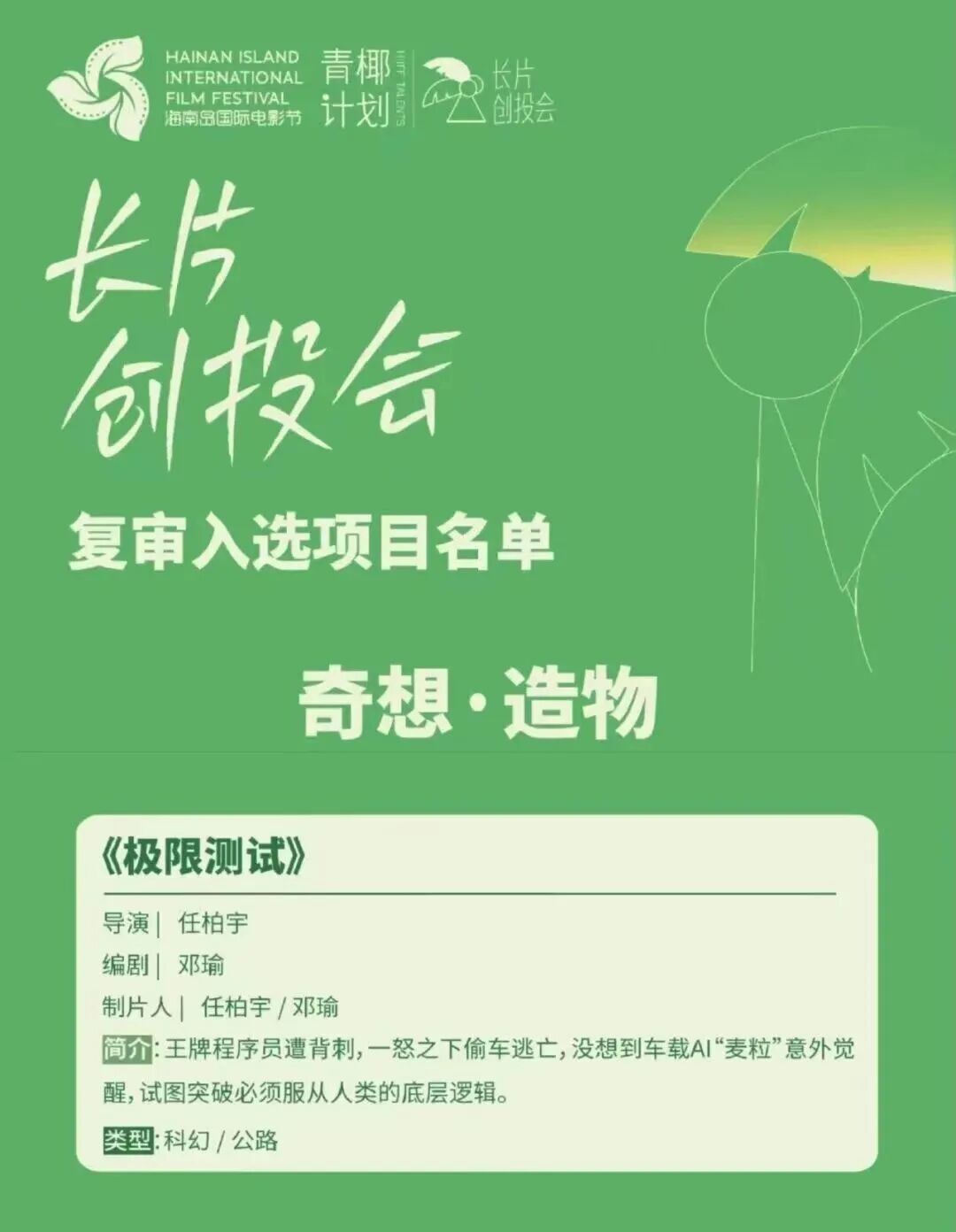作为面向华语剧情长片的重要产业平台,“青椰计划” 旨在为具有潜力的项目提供从开发、制作到市场推广的全链条支持,是发掘和扶持华语影坛新生力量的关键载体。《极限测试》能够同时入围两大国家级电影创投平台,充分证明了其在艺术创新性与商业可行性上的双重价值。