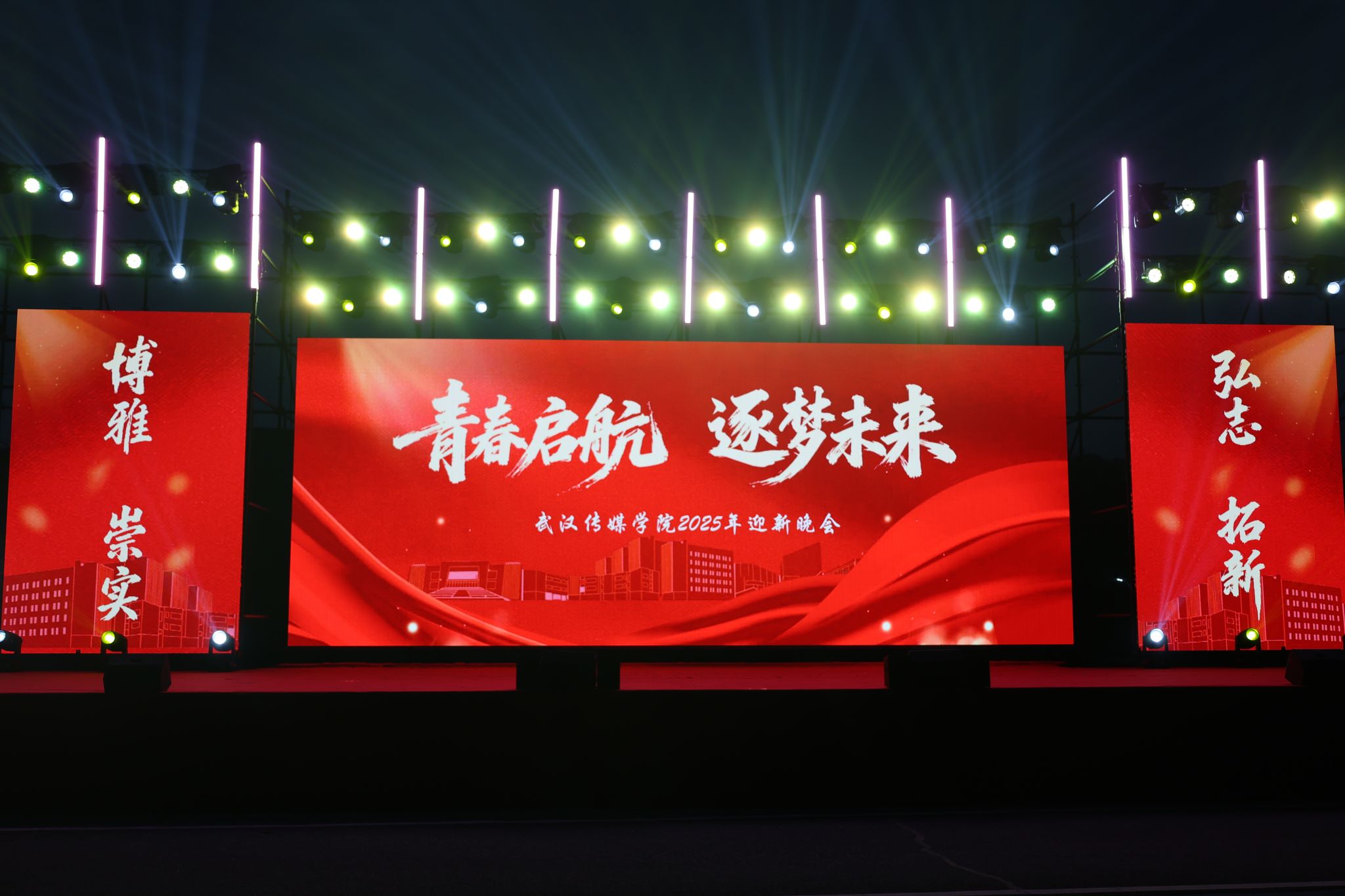 今夜,2025 级新生的朝气与武汉传媒学院的艺术活力交相辉映。这场晚会既是迎新仪式,更是新生逐梦武传的起点。愿 2025 级新生在武传的舞台上书写精彩,在传媒艺术之路上逐梦前行!