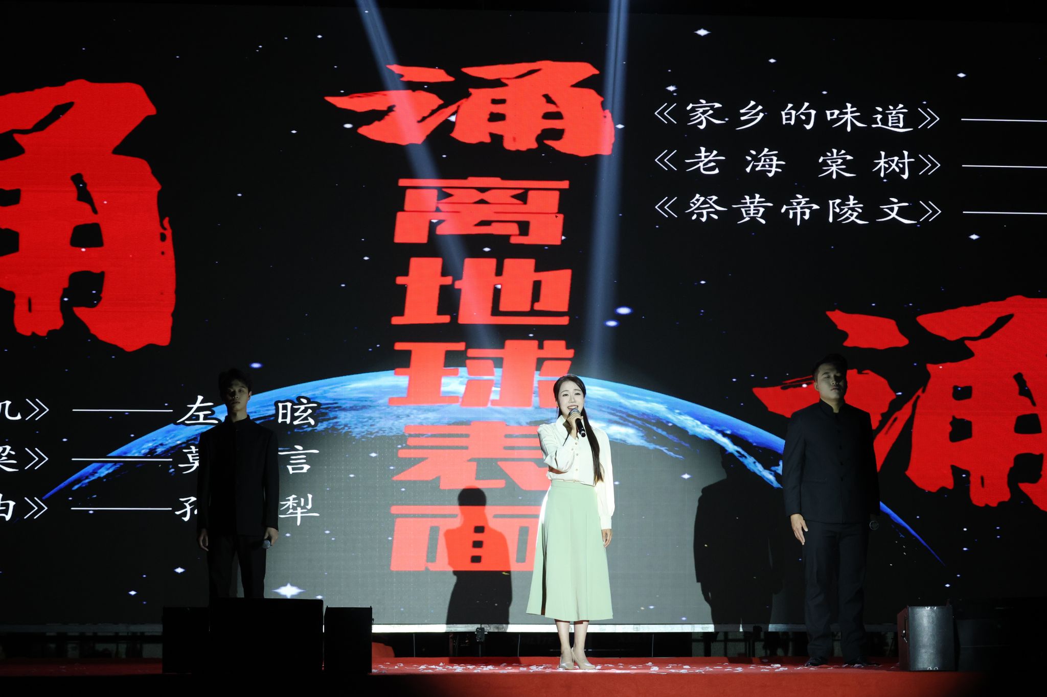 《心弦四叠》以歌声串联青春故事,温暖动人;诗朗诵《诵离地球表面》用声音搭建 “天梯”,带领观众穿越时空,触摸不朽精神图腾;歌曲《灯火里的中国》则以温婉声线抒发爱国情怀,舞台背景中 “火红灯火” 映照奋斗身影。