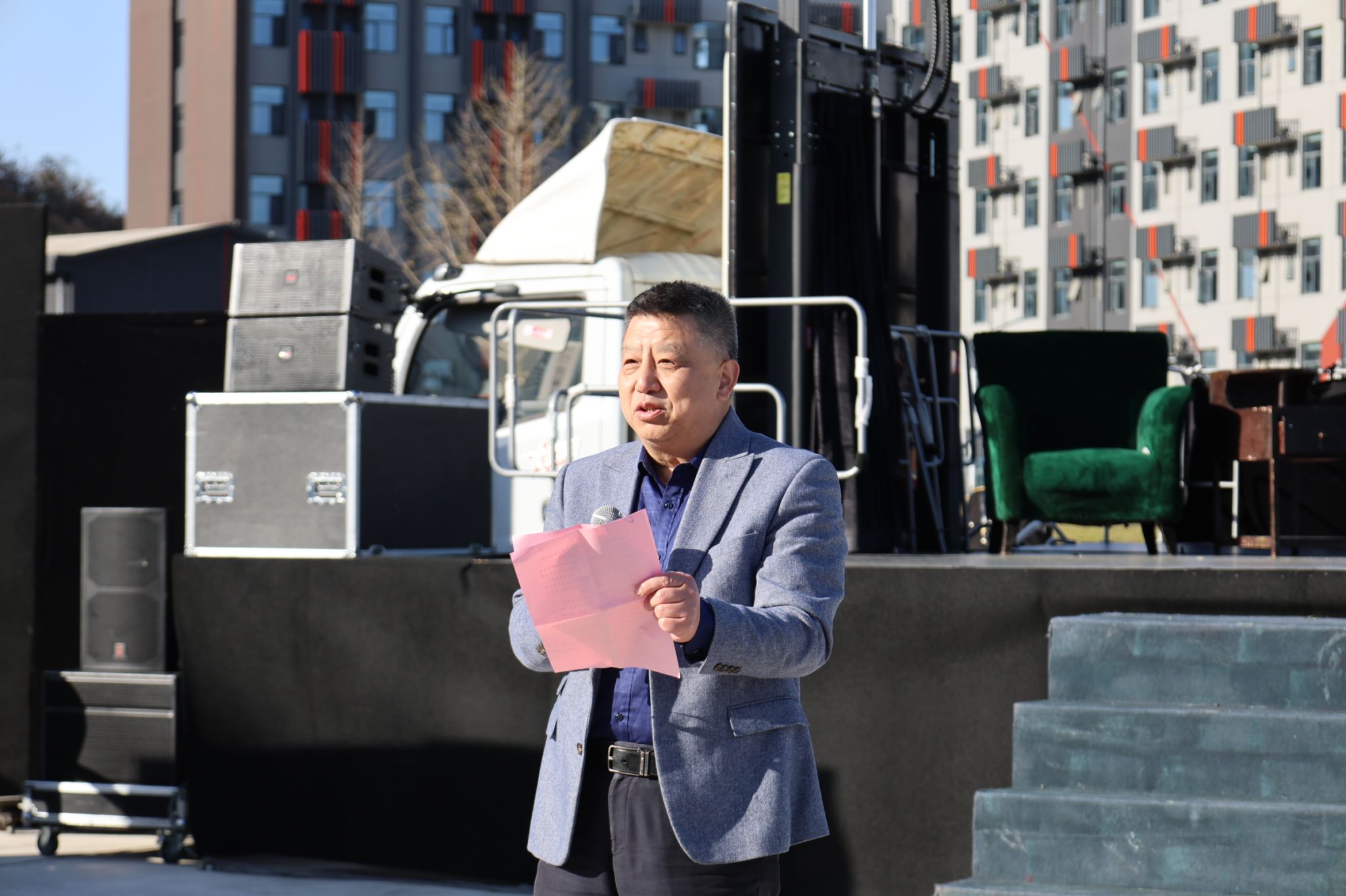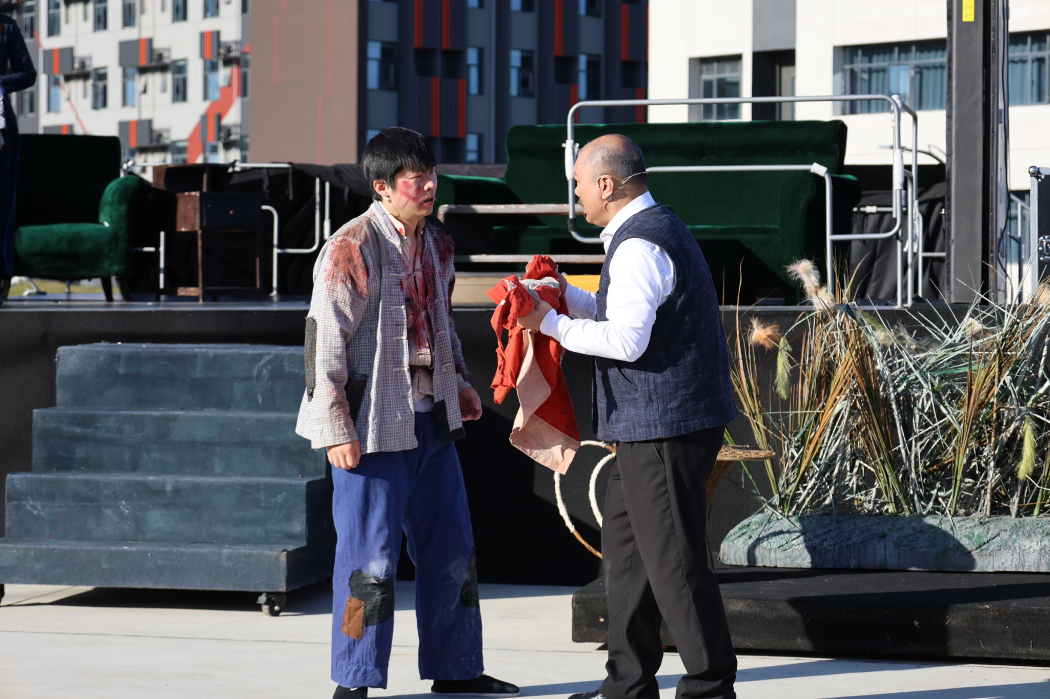在话剧演出前,武汉传媒学院校长王爱民发表致辞。他指出,大别山精神是习近平总书记强调的宝贵精神财富,而大悟作为红色热土,正是这份精神的重要孕育地。作为大别山精神的重要缔造者与培育者,董必武曾在此播撒革命火种,1923年至1924年先后组织建立中共黄安、麻城工作组,为当地革命斗争奠定坚实基础。他表示,学校扎根大悟办学,始终以传承红色文化为己任,致力于培育既掌握专业传媒技能,又深植家国情怀的青年力量。希望引导学生不仅会讲中国故事、大别山故事,更能读懂故事背后的精神密码,带着责任与担当成长为新时代优秀传媒工作者。