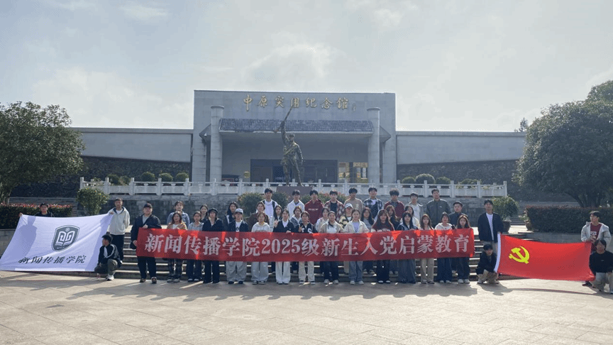 为引导 2025 级新生厚植爱党爱国情怀,明晰入党初心,结合学校 “一年级工程” 总体部署要求,10月14日,我校新闻传播学院开展 2025 级新生入党启蒙教育 —— 组织新生赴大悟县中原军区旧址开展红色研学,傍晚同步召开主题宣讲会,为新生播下信仰的种子。