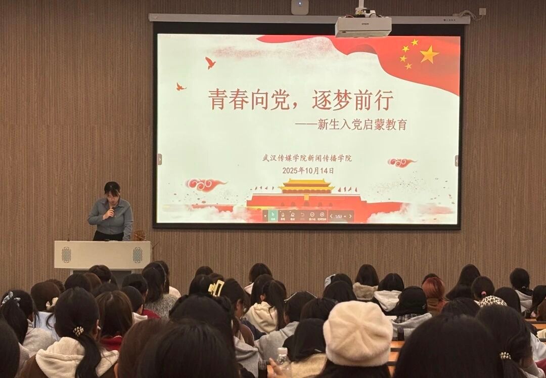 当日傍晚,新闻传播学院召开 “青春向党,逐梦前行” 主题新生入党启蒙教育宣讲会。新闻传播学院党总支书记张爱军、组织员朱赫,2025 级新生辅导员方锦华、何宇轩及全体 2025 级新生参会。