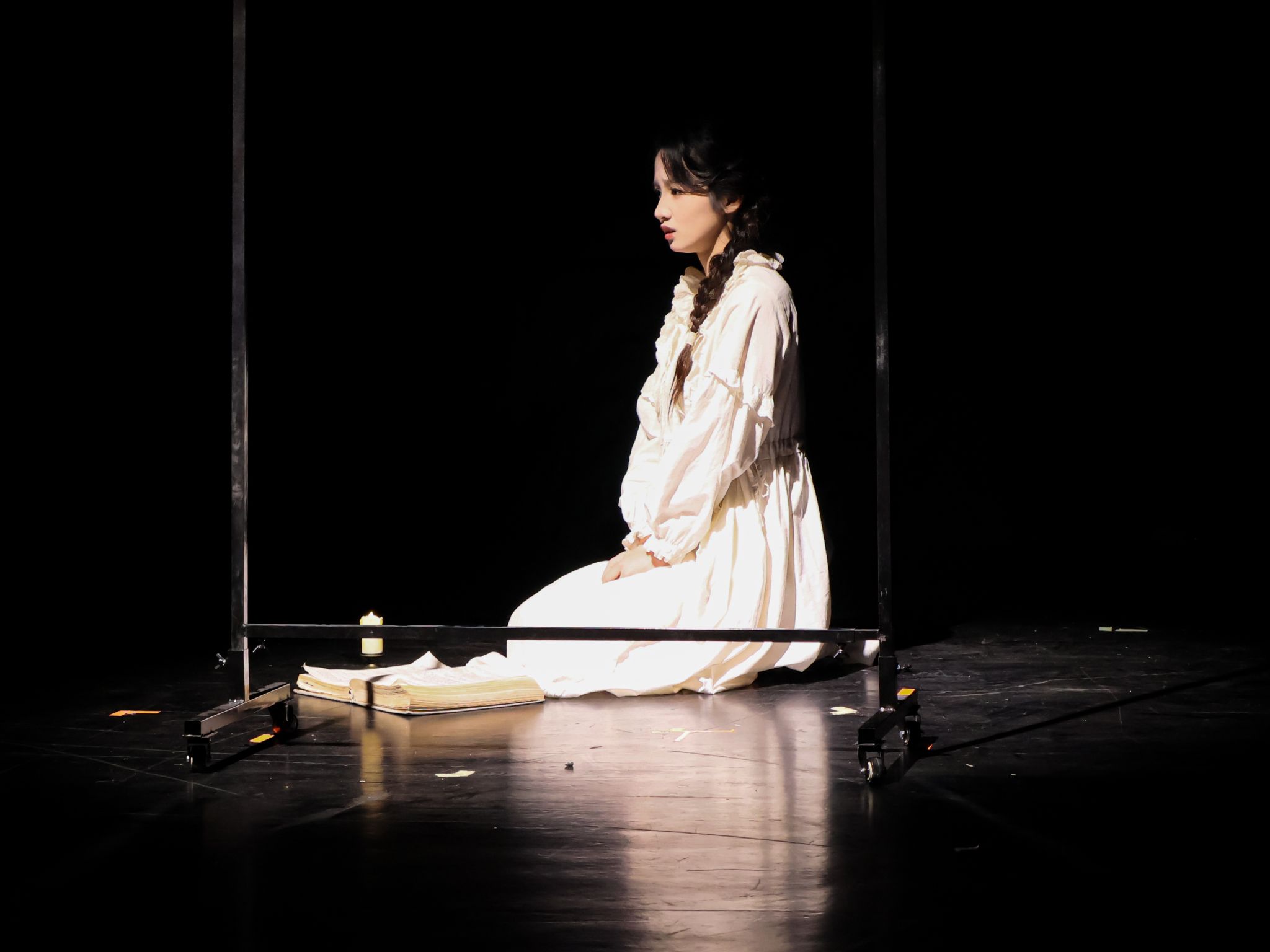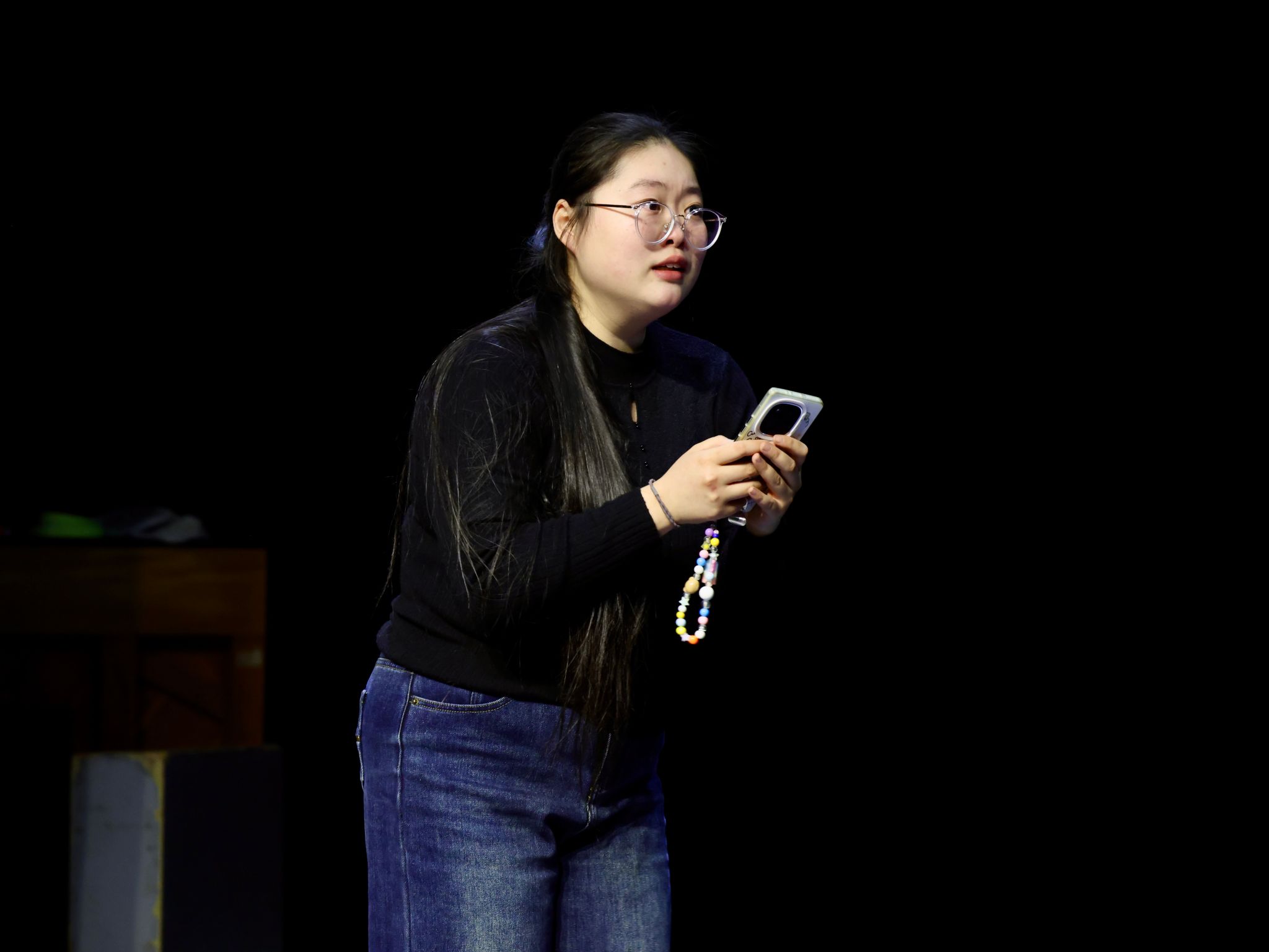 剧目《黑色夜晚》由张艺洳主演、刘英康老师指导,讲述了一个女孩在深夜突遭父丧与巨额债务的双重打击,在崩溃边缘,因放不下对母亲的责任而放弃轻生,最终在无尽的黑暗与孤独中,被迫继续负重前行的故事。