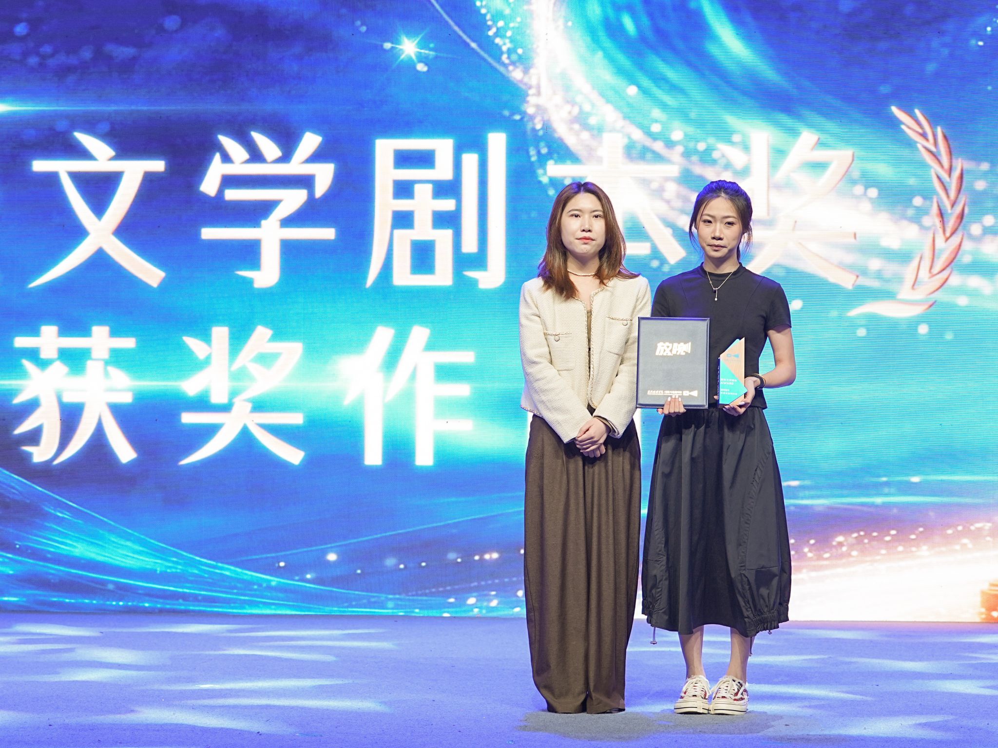 戏剧教育系主任刘霏仪为最佳文学剧本奖获奖作品《昔人已驾鹤西去》颁奖,寄语青年创作者扎根真实生活,记录真实情感、讲述真实故事。