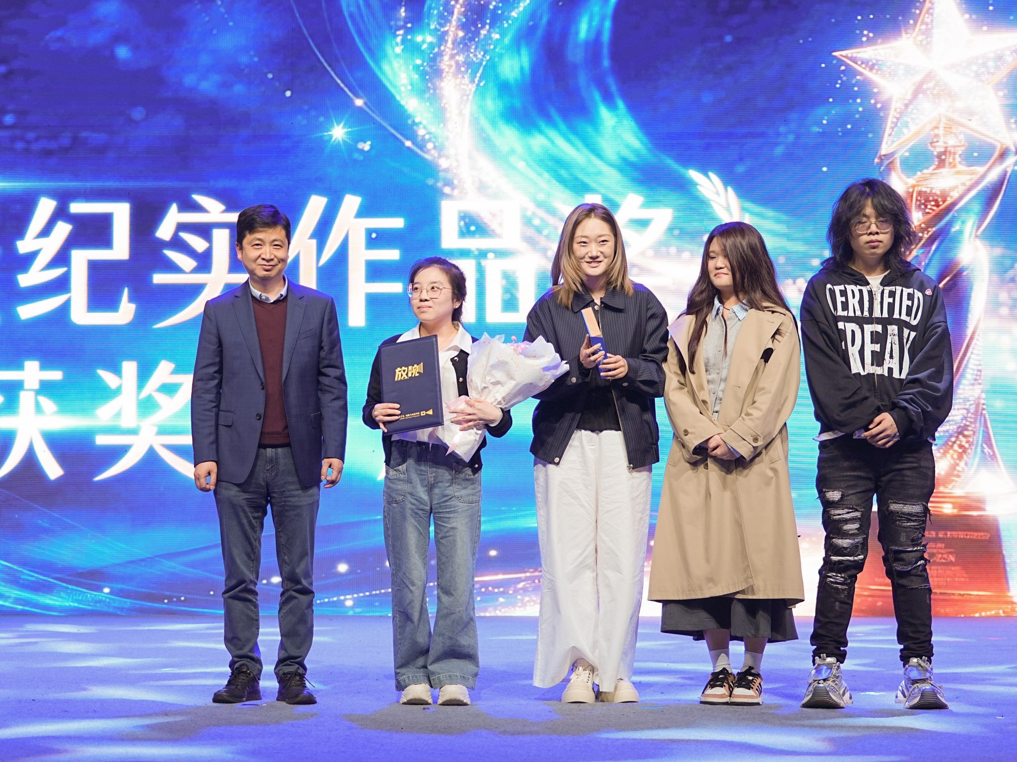 颁奖尾声,学生乐队带来《直到世界尽头》,将现场氛围推向高潮。主持人结语表示,本次典礼既是对 2026 届毕业生四年学业成果的集中检阅,也是学院十年办学成效的全面展示,愿全体毕业生坚守初心、勇毅前行,以影像记录时代、以创作回应世界,活出不可复制的精彩人生。
